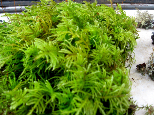 FRESH FEATHER MOSS, 1 Square Foot Of Moss: Feather moss has the unique characteristic of what looks like green feathers. This moss is great for Closed Terrariums, and will actually start growing in your terrarium. These can range form small 1-inch feathers to jumbo 3-inch goose feathers. This moss ranges in color from a light spring-green to a lush olive green. Feather moss is by far the most unique of any of our moss. Fresh Feather Moss comes in sheets that range from 6 in. to 3 feet wide. This is untreated all natural moss, shipped directly to the customer. Has a shelf life of 2 to 3 weeks if kept refrigerated. 1 square foot of moss. Sheet moss, live sheet moss, green sheet moss, live moss