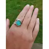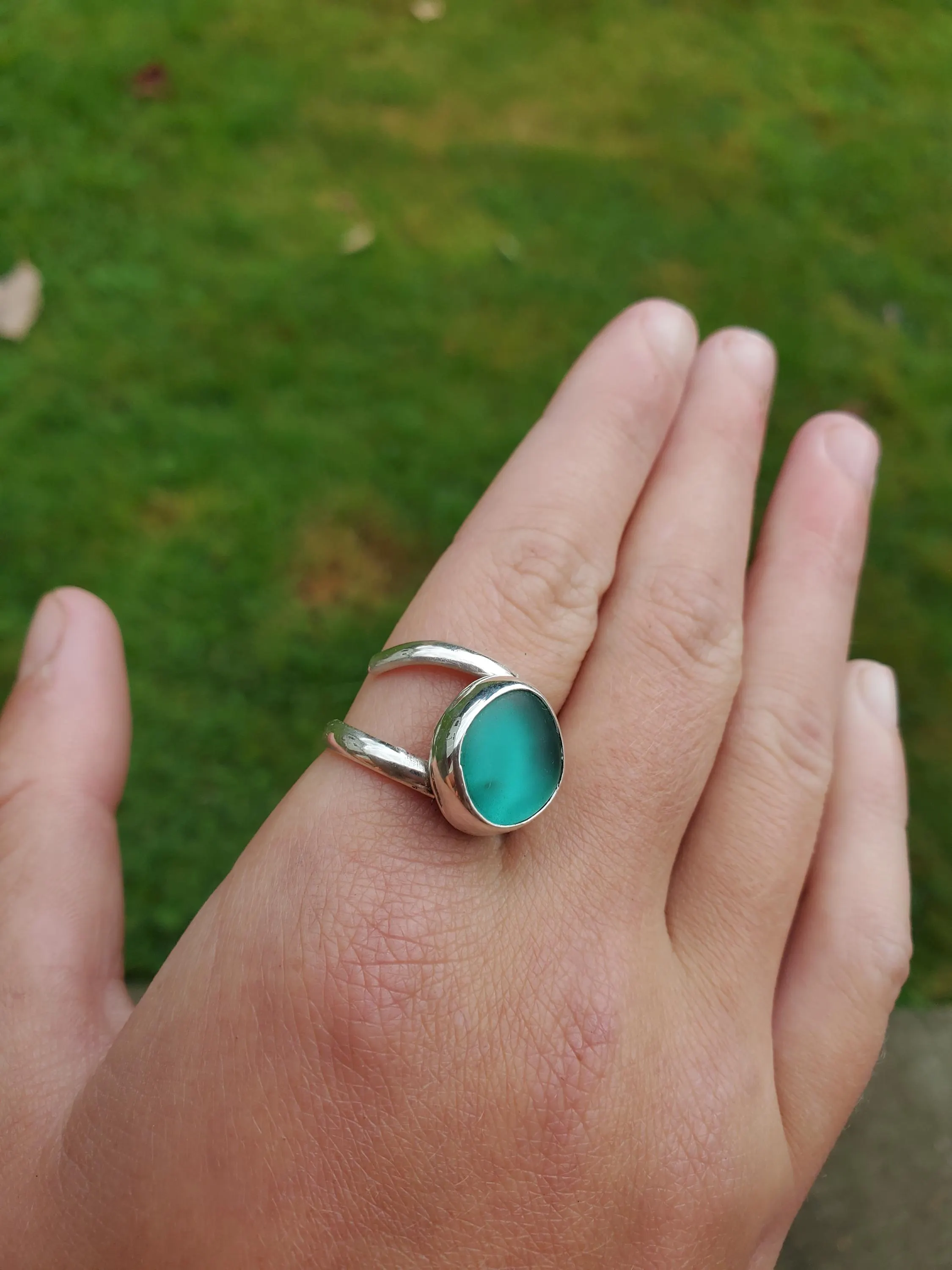 Gorgeous Sea Blue-green Seaglass Adjustable  Ring Fine Silver– Handmade with Coastal Elegance